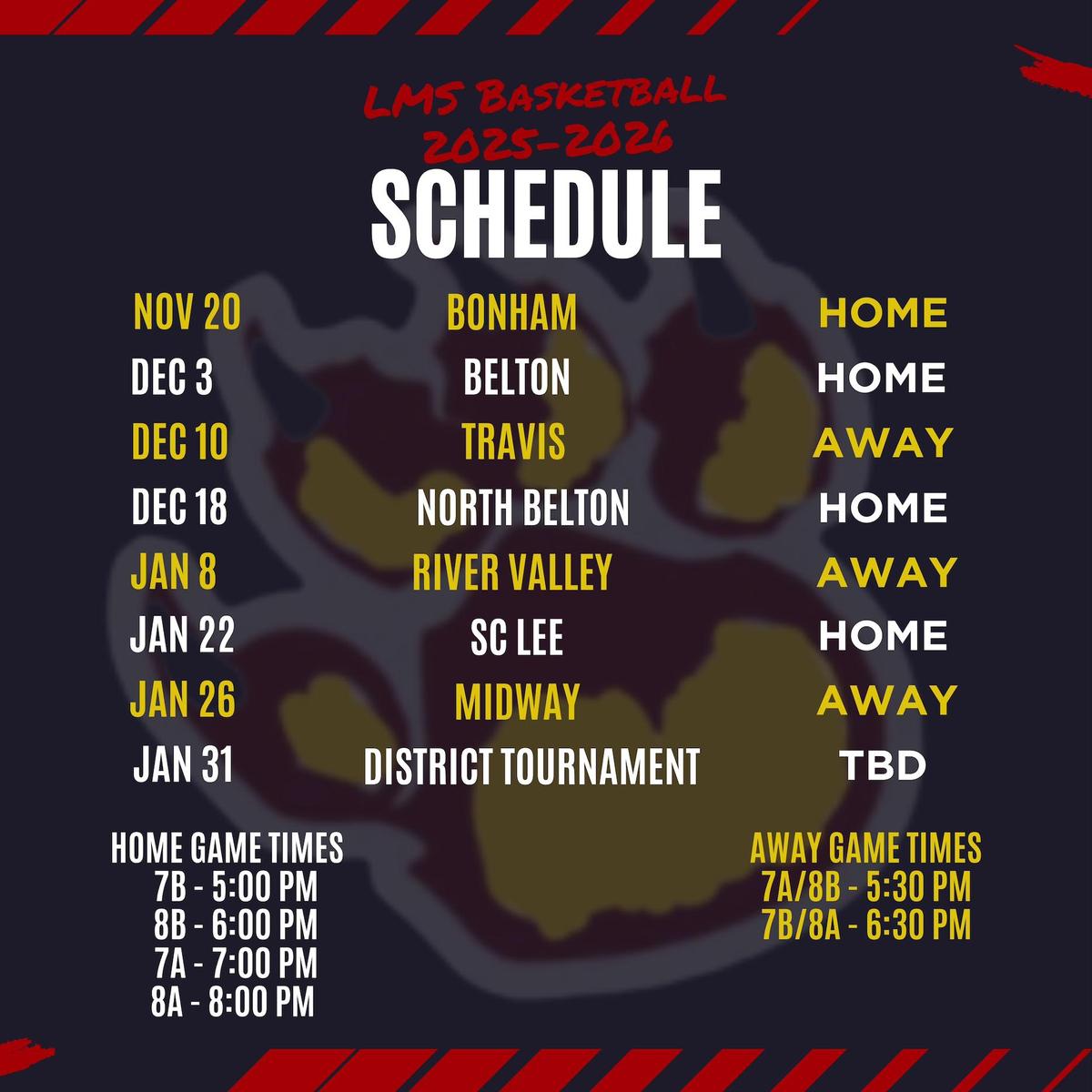 Boys Basketball Game Schedule